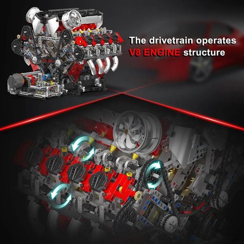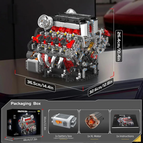 Explore a engenharia de alto desempenho com este conjunto de blocos de montar da Mould King que replica o motor V8 do emblemático Ferrari 488. Com 2.178 peças, este kit entrega uma experiência de montagem refinada, com peças funcionais, visual realista e acabamento profissional.