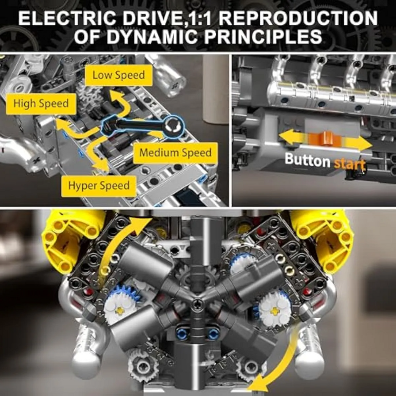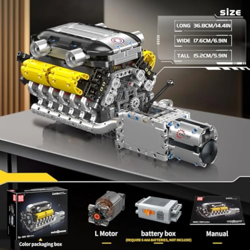 O Motor V12 Mould King 10202 é um kit para quem gosta de engenharia “raiz”: aqui você monta um V12 completo, inspirado nos motores de supercarros italianos Lamborghini e Ferrari, com pistões em movimento, comando de válvulas, virabrequim e câmbio acoplado. São 1.260 peças para construir um motor funcional em blocos, com direito a motor elétrico e caixa de marchas manual de 4 velocidades.