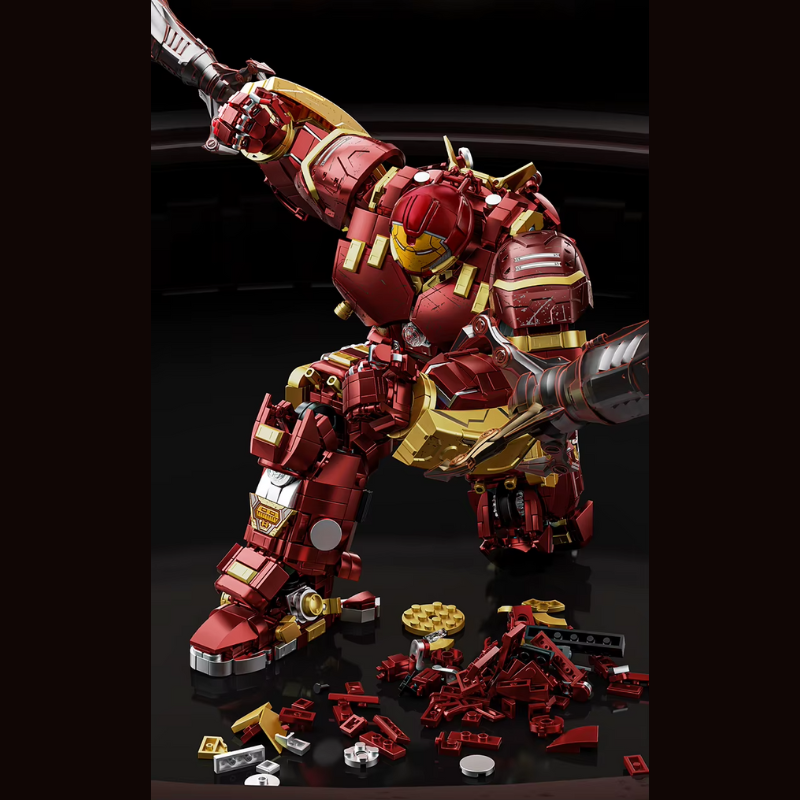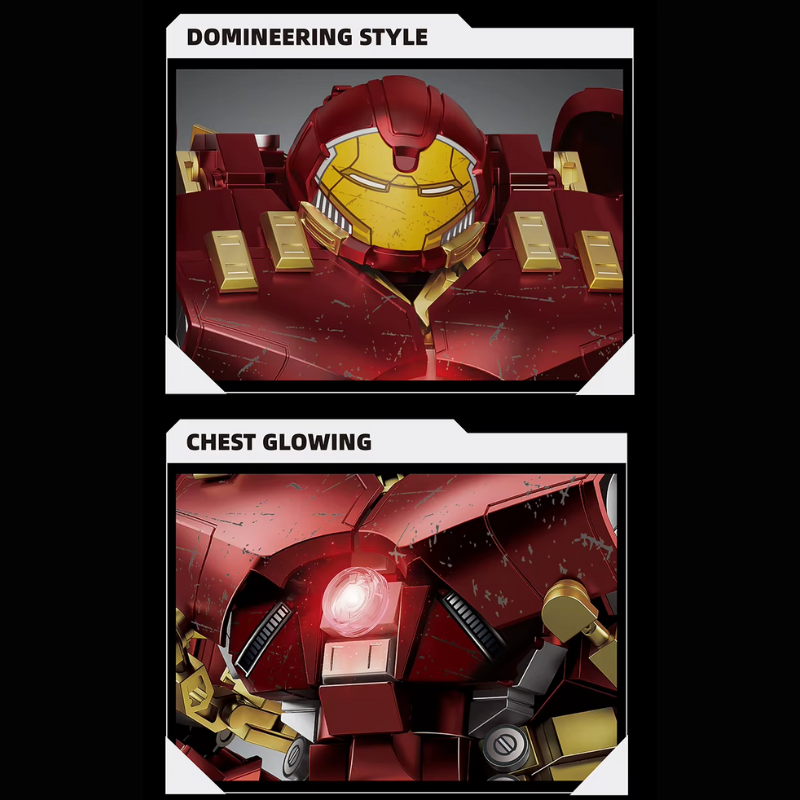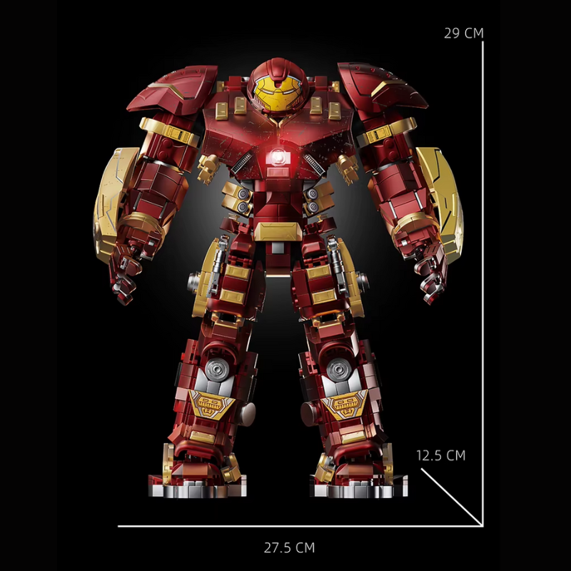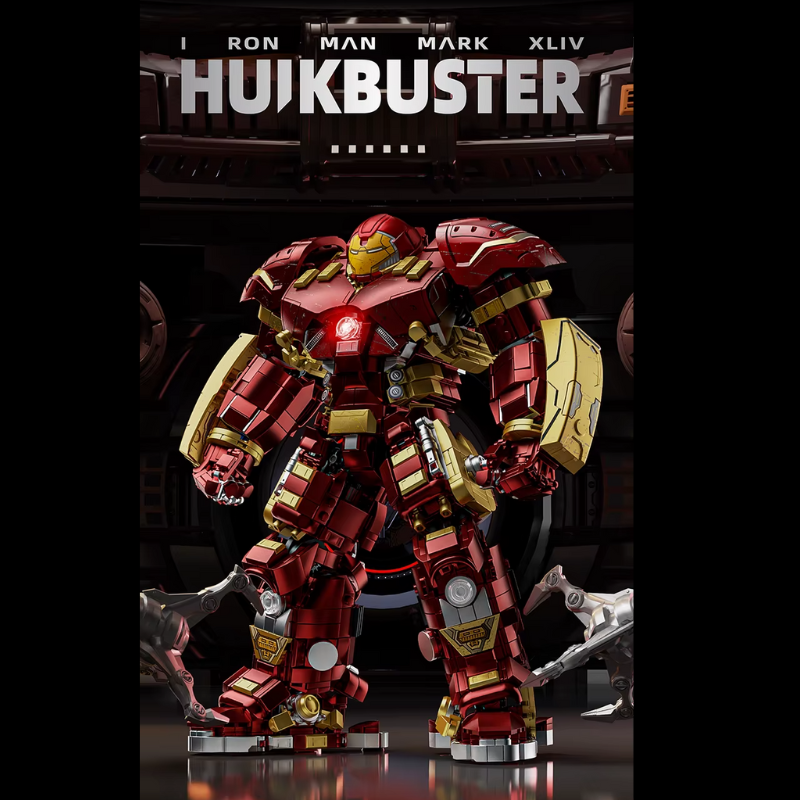 A Hulkbuster Iron Man Mark XLIV em blocos de montar é um modelo pensado para quem quer uma peça realmente imponente na coleção Marvel. Em formato de busto/torso mecânico, ela destaca toda a parte superior da armadura do Homem de Ferro em modo Hulkbuster: ombros gigantes, peitoral robusto, detalhes mecânicos aparentes e visual de estátua colecionável.