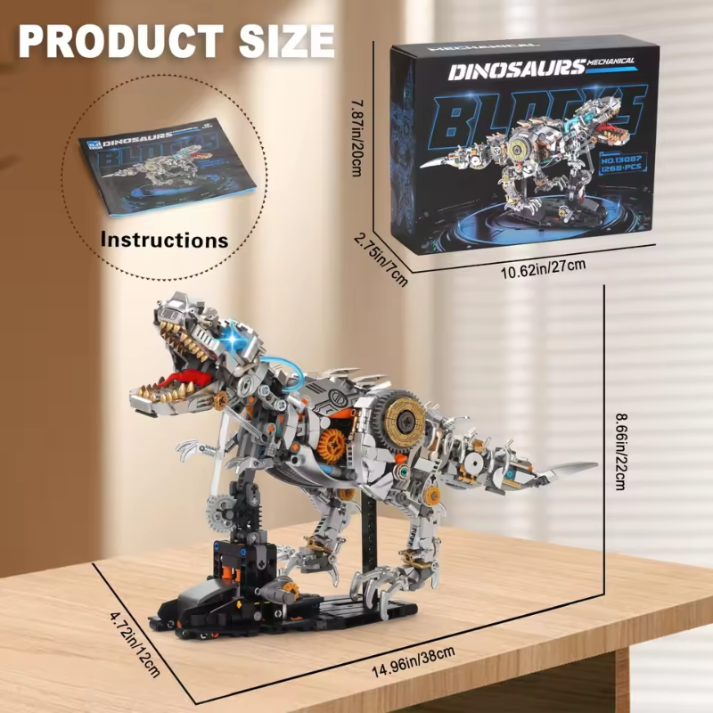 Excelente opção de presente para fãs de dinossauros, engenharia, modelos mecânicos e blocos de montar