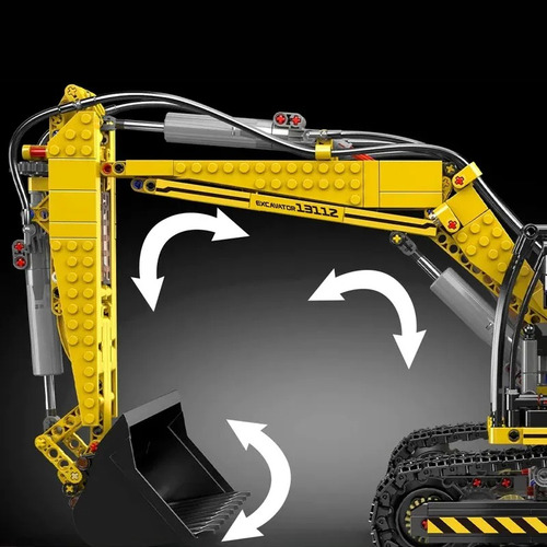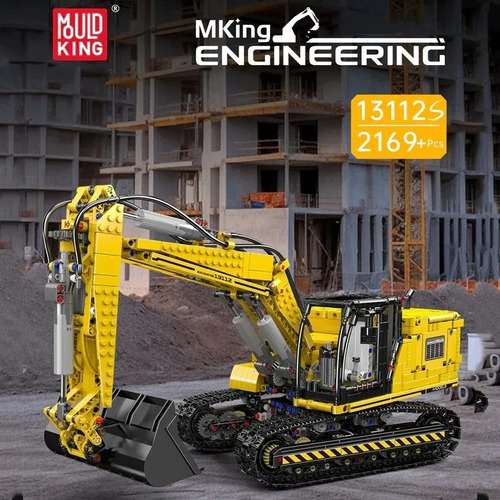 Mould King 13112s - Link_ Belt 250 X3 Excavator (Escavadeira Link_ Belt 250 X3 em escala 1:8 com 2169 Peças + 6 Motores + 1 Extensão + 2 Baterias Recarregáveis Bluetooth (Lítio_7,5 Volts) + 1 Controle Remoto Bluetooth.