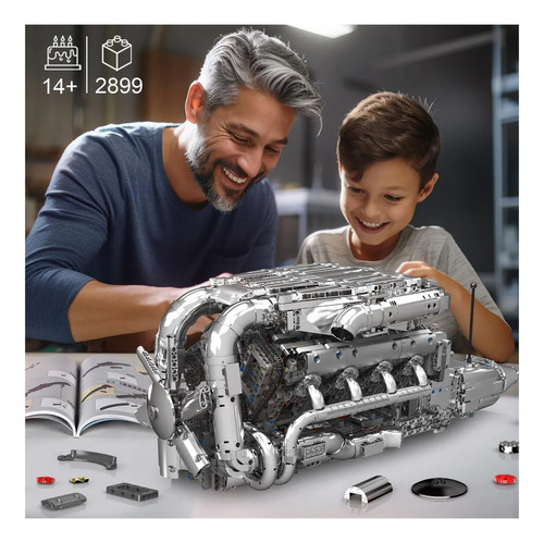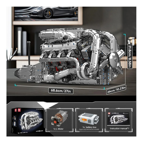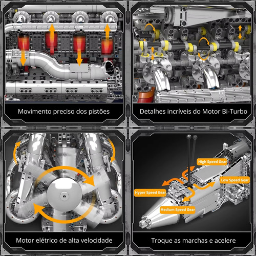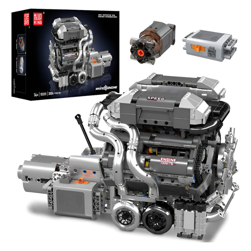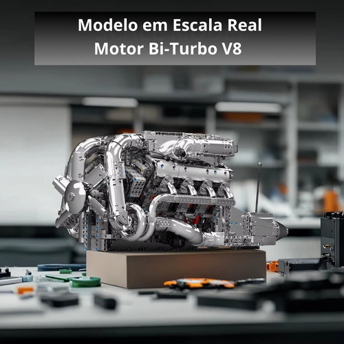 Este conjunto da Mould King 10168 traz uma experiência de montagem profunda com 2.989 peças, permitindo construir uma réplica funcional de um motor V8 biturbo, incluindo pistões em movimento, caixa de câmbio, turboalimentação e mais. O detalhe técnico e o acabamento fazem deste kit uma peça para exibição, montagem intensiva e coleção.