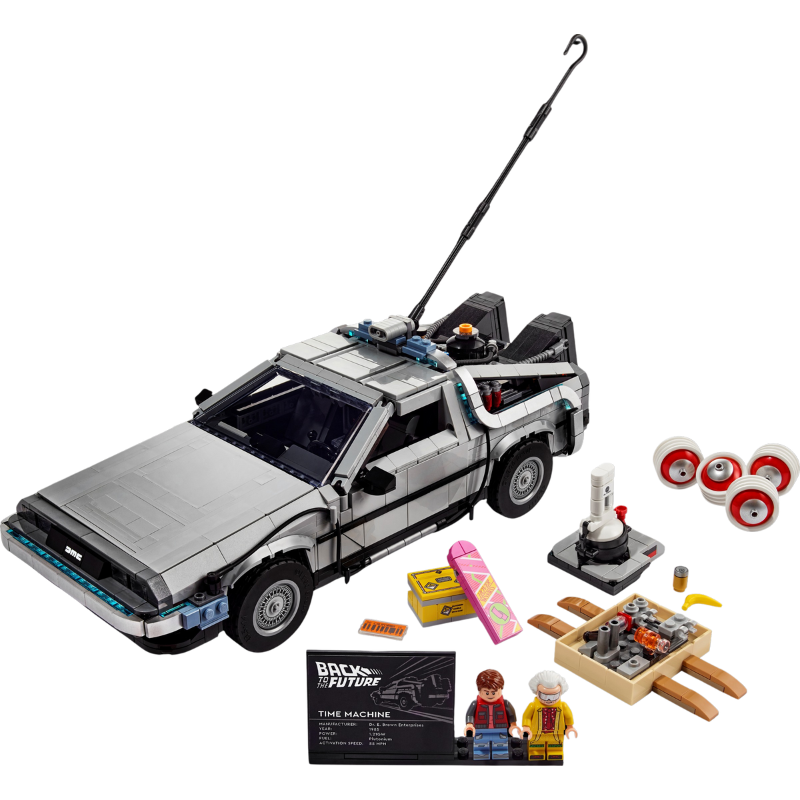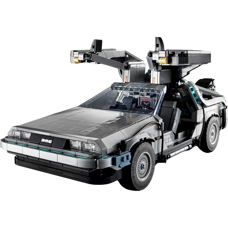 Design inspirado no icônico DMC DeLorean (versão “Time Machine”), com detalhes que remetem à viagem no tempo e elementos de cultura pop.