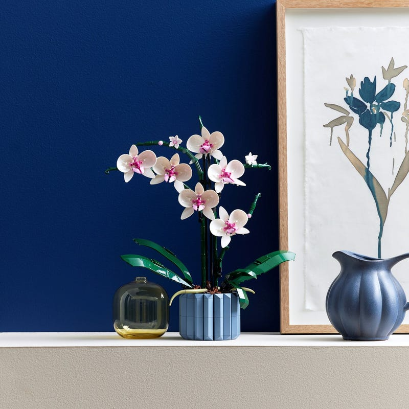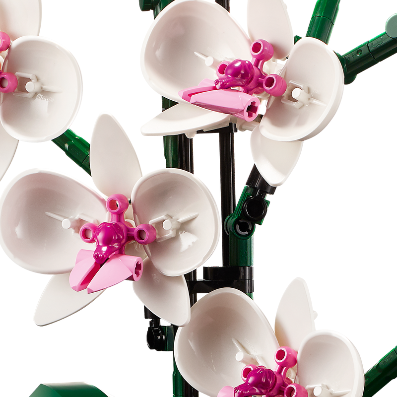 O arranjo de Orquídeas da linha Flores Botanicals em blocos de montar é perfeito para quem ama decoração e quer algo diferente dos vasos tradicionais, ele cria um vaso elegante com hastes, flores articuladas e folhagem detalhada, que combina com sala, quarto, home office ou até recepção de clientes.