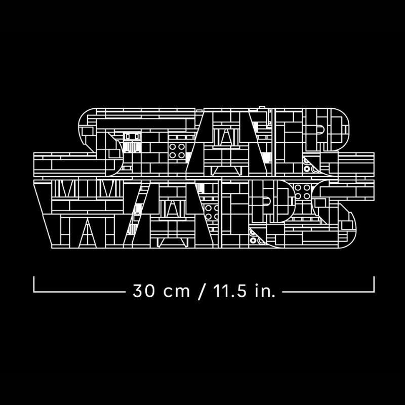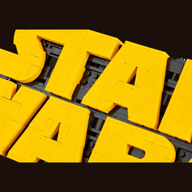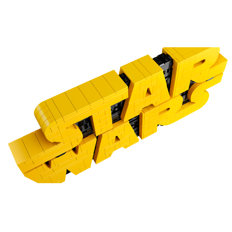 Logo clássico Star Wars construído inteiramente em blocos de montar