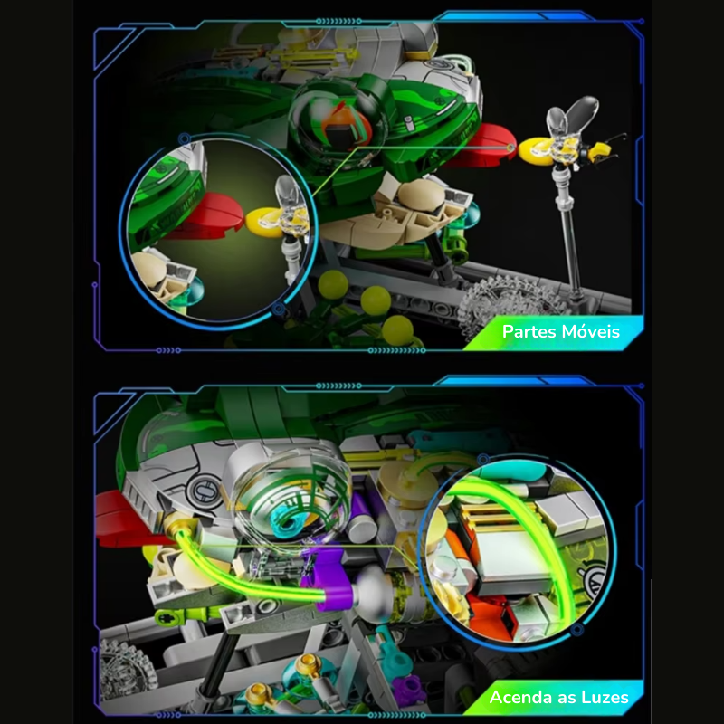 O Sapo Mecânico foi feito para quem gosta de montagens diferentes, cheias de personalidade e presença na prateleira. Com 898 peças, este modelo traz o visual de um sapo em versão “robótica”, com formas angulares e aparência mecânica, criando um contraste interessante entre o tema animal e o estilo tecnológico.