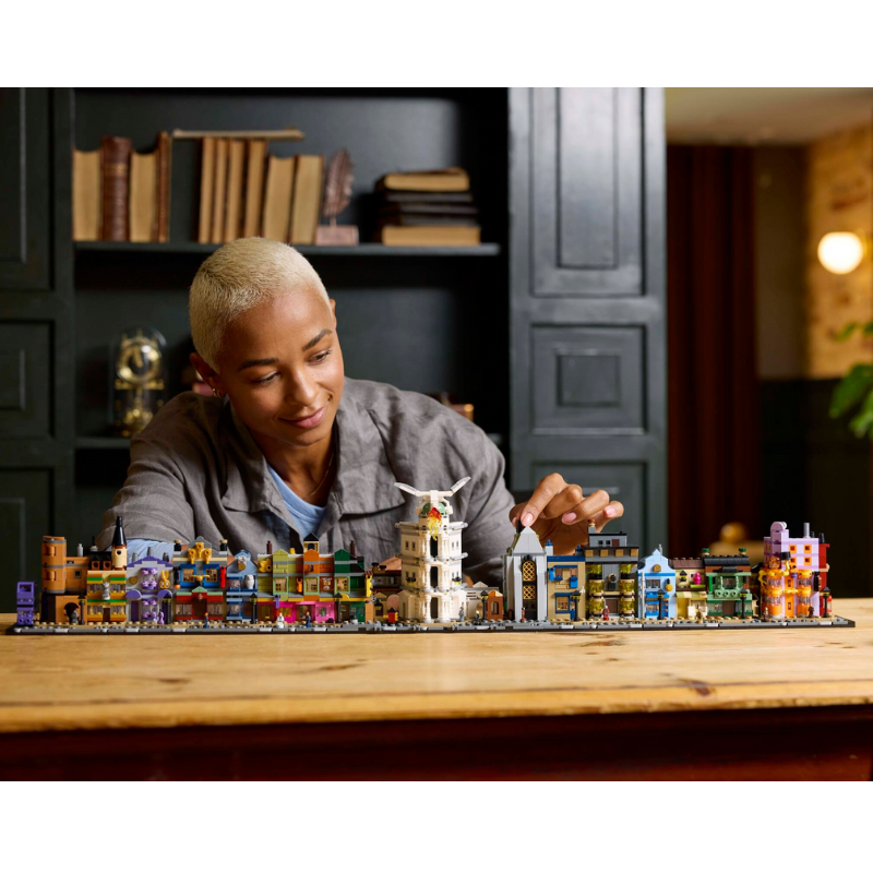 Este conjunto inspirado no icônico Beco Diagonal foi criado para colecionadores que buscam uma experiência de montagem rica, cheia de detalhes e com forte presença visual. Com 2.750 peças, cada etapa revela fachadas mágicas, vitrines encantadas, texturas arquitetônicas e elementos clássicos do mundo bruxo. O resultado final não é apenas um modelo — é uma peça de destaque na coleção, com atmosfera imersiva, acabamento premium e a certeza de que quem vê, admira.