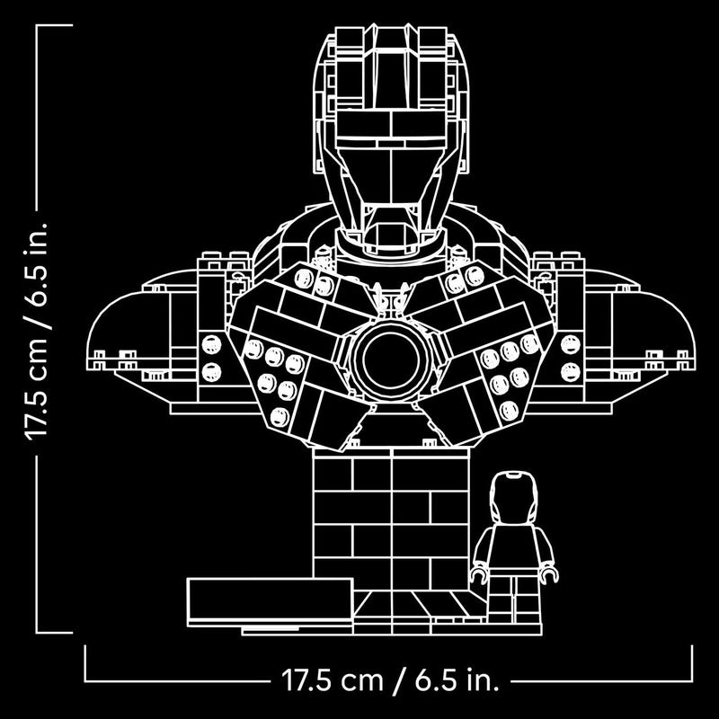 • Design inspirado na armadura Iron Man MK4, com detalhes do peitoral, capacete e estrutura do busto