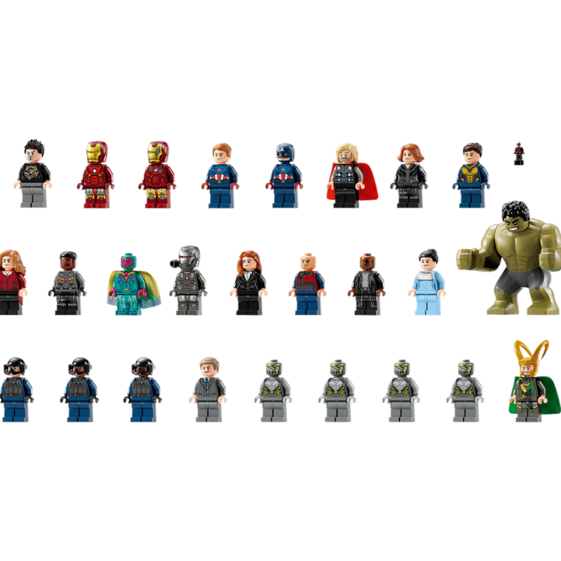 Inclui 31 minifiguras, reunindo uma grande seleção de heróis e vilões do universo Marvel
