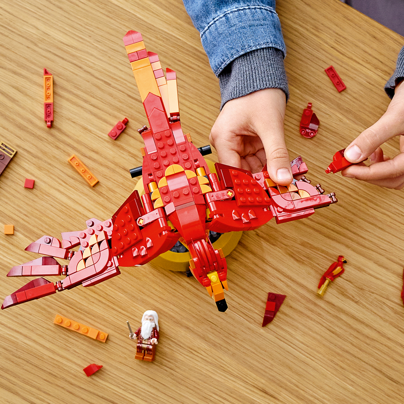 Fawkes, a lendária fênix de Alvo Dumbledore, simboliza lealdade, renascimento e magia ancestral. Este modelo foi desenvolvido para colecionadores que buscam uma peça elegante, simbólica e com forte impacto visual dentro do universo Harry Potter. Com 597 peças, a montagem recria a imponência da fênix em posição de exibição, com asas abertas, plumagem detalhada e expressão majestosa. O resultado final não é apenas um modelo — é uma peça de destaque refinada, carregada de significado e presença.