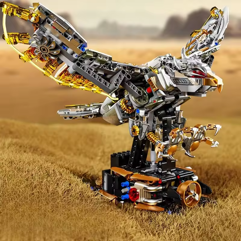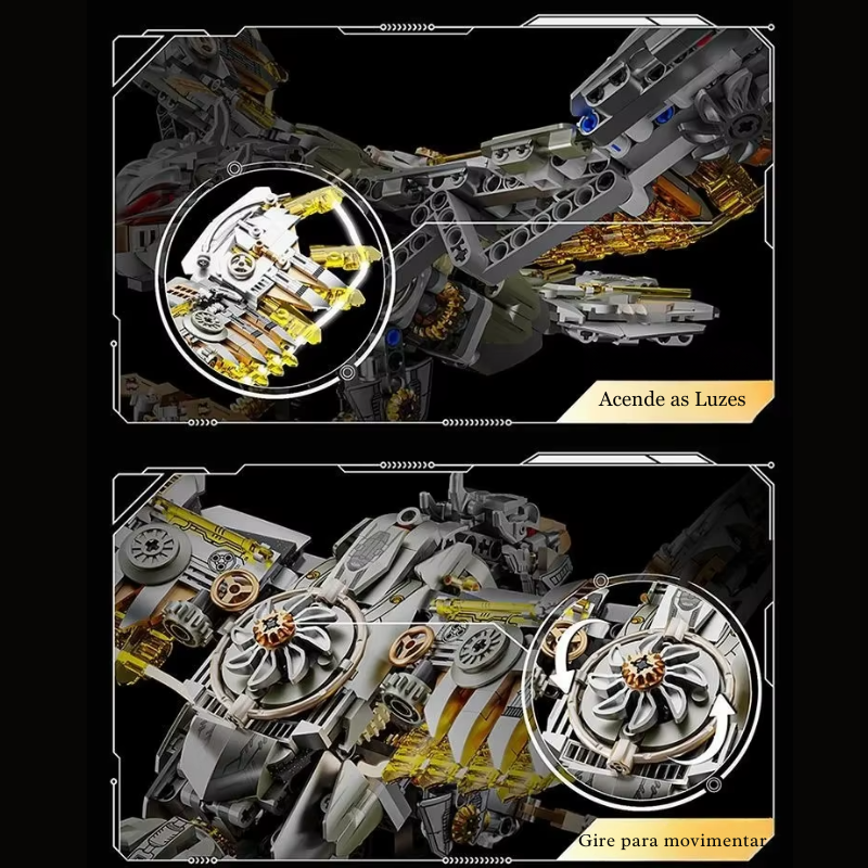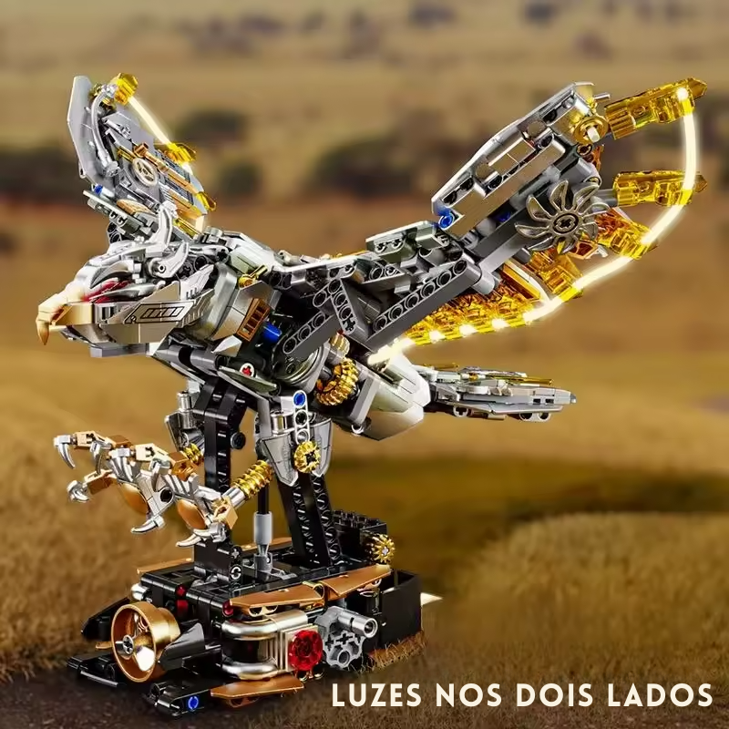 A Águia semi Mecânica da linha Davinci é daqueles modelos que viram peça central em qualquer coleção. Com 1168 peças, ele combina o visual imponente da Aguia Americana com um design mecânico/steampunk cheio de engrenagens aparentes, placas metálicas e estrutura robusta, ideal para decorar escritório, estante ou quarto gamer.