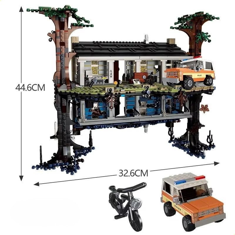 Inspirado em um dos cenários mais icônicos de Stranger Things, o The Upside Down recria, em blocos de montar, a dualidade entre o mundo real e a dimensão sombria do Mundo Invertido. Este modelo entrega uma experiência de montagem única, onde duas realidades coexistem na mesma estrutura — casa, floresta e atmosfera duplicadas em um layout espelhado impressionante.