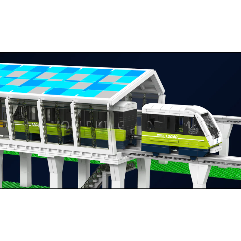 Com 1.957 peças, este modelo reproduz com grande riqueza de detalhes um trem urbano elevado, incluindo estação moderna, trilhos elevados e vagões detalhados.