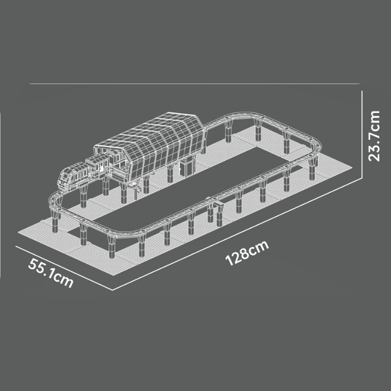 O conjunto recria um sistema ferroviário urbano completo, com trilhos elevados que simulam viadutos reais. O trem pode circular ao redor da estação, proporcionando uma experiência interativa de montagem e exibição.