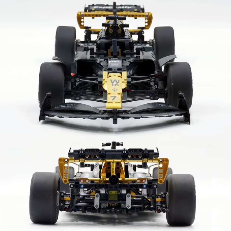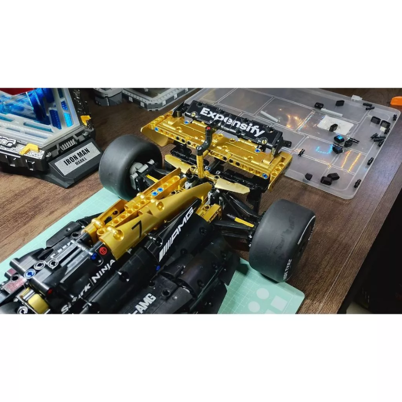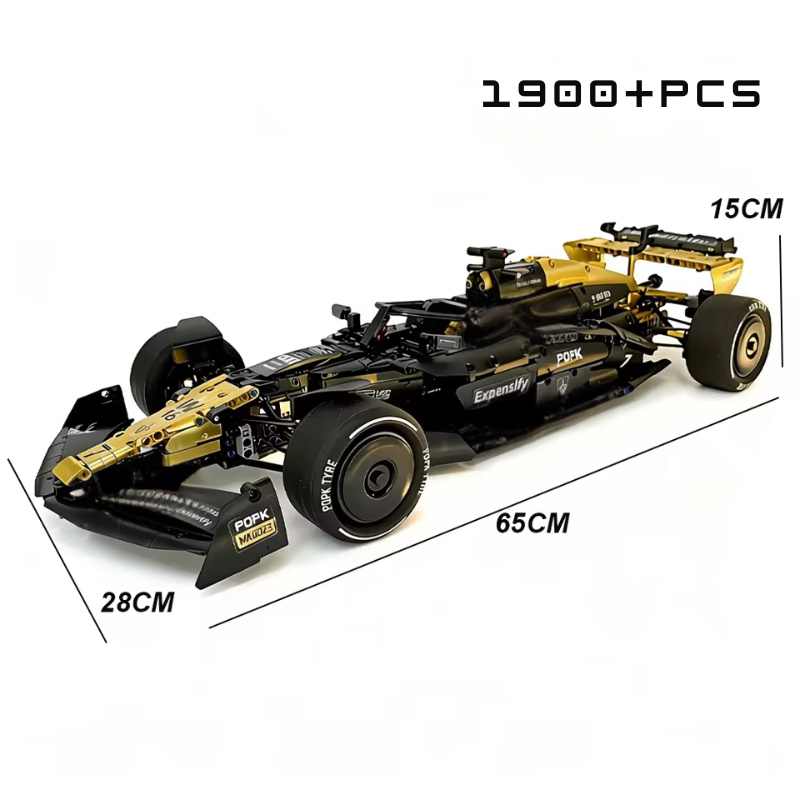 Com 1969 peças, o carro entrega linhas aerodinâmicas agressivas, estrutura detalhada e uma presença marcante que remete diretamente aos carros de corrida modernos.