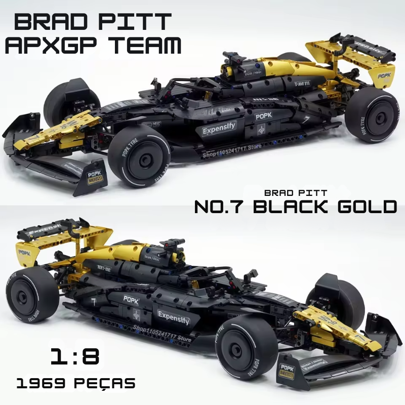 Inspirado no universo da Formula 1 e no aguardado filme F1, com o carro pilotado pelo astro Brad Pitt, este modelo APXGP em blocos de montar captura a essência da alta performance.